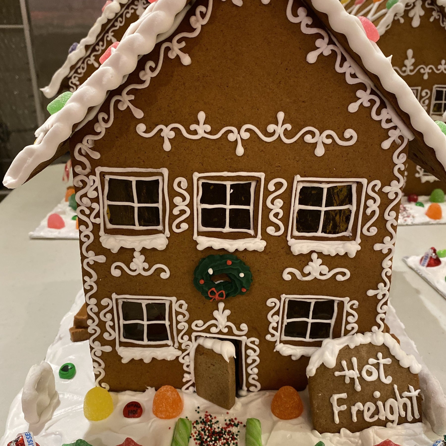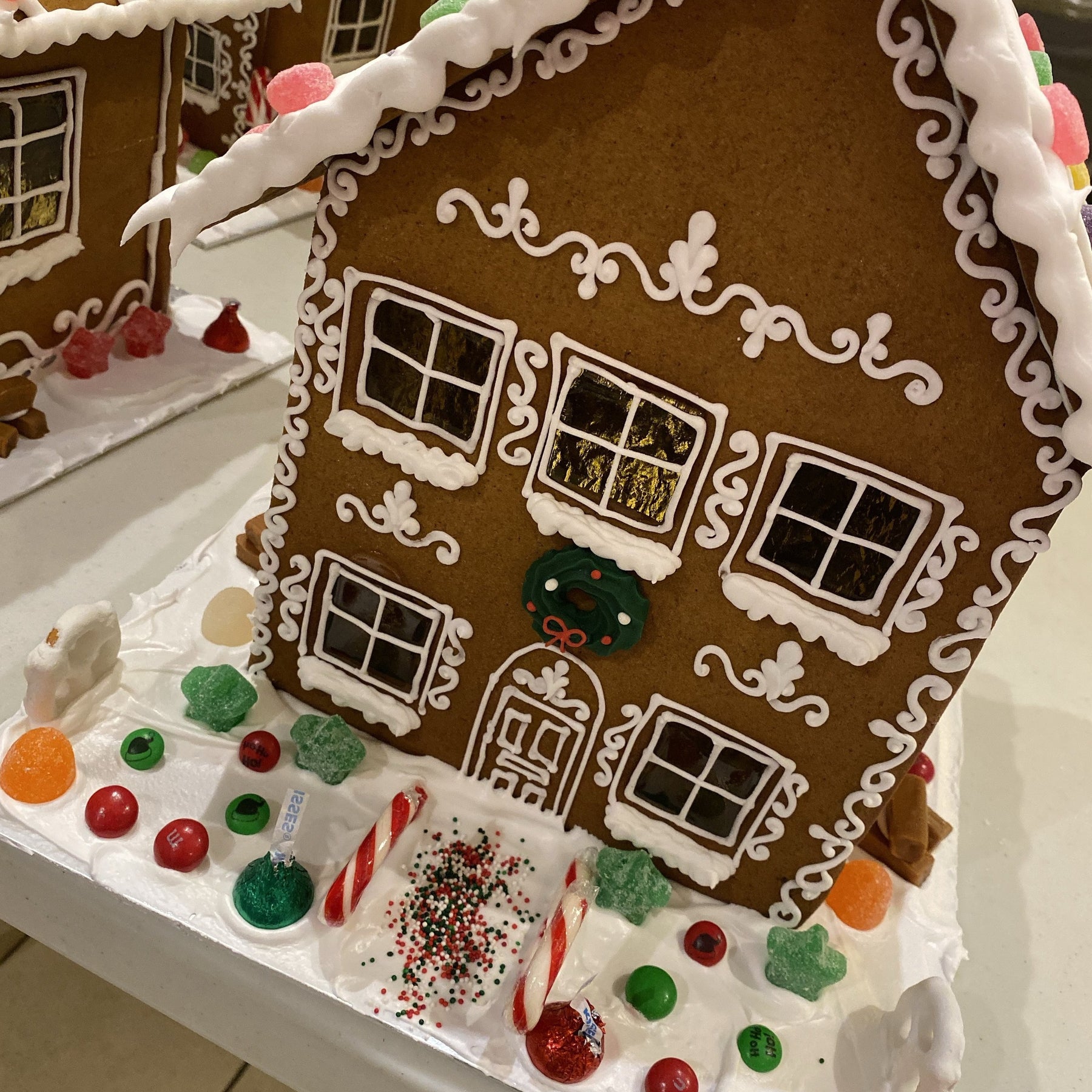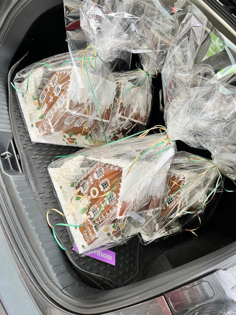 Step into the holiday magic with our large, fully finished gingerbread house! This enchanting centre piece is crafted with love and attention to detail, featuring beautiful sugar windows that glow warmly from *battery-operated* lights inside. Perfect for bringing charm and holiday spirit to any room, this house is ready to enjoy from the moment it arrives—no assembly required. Display it proudly or share it as a thoughtful, festive gift. Make this holiday season even sweeter with a gingerbread house that sparkles just as bright as the season itself!
