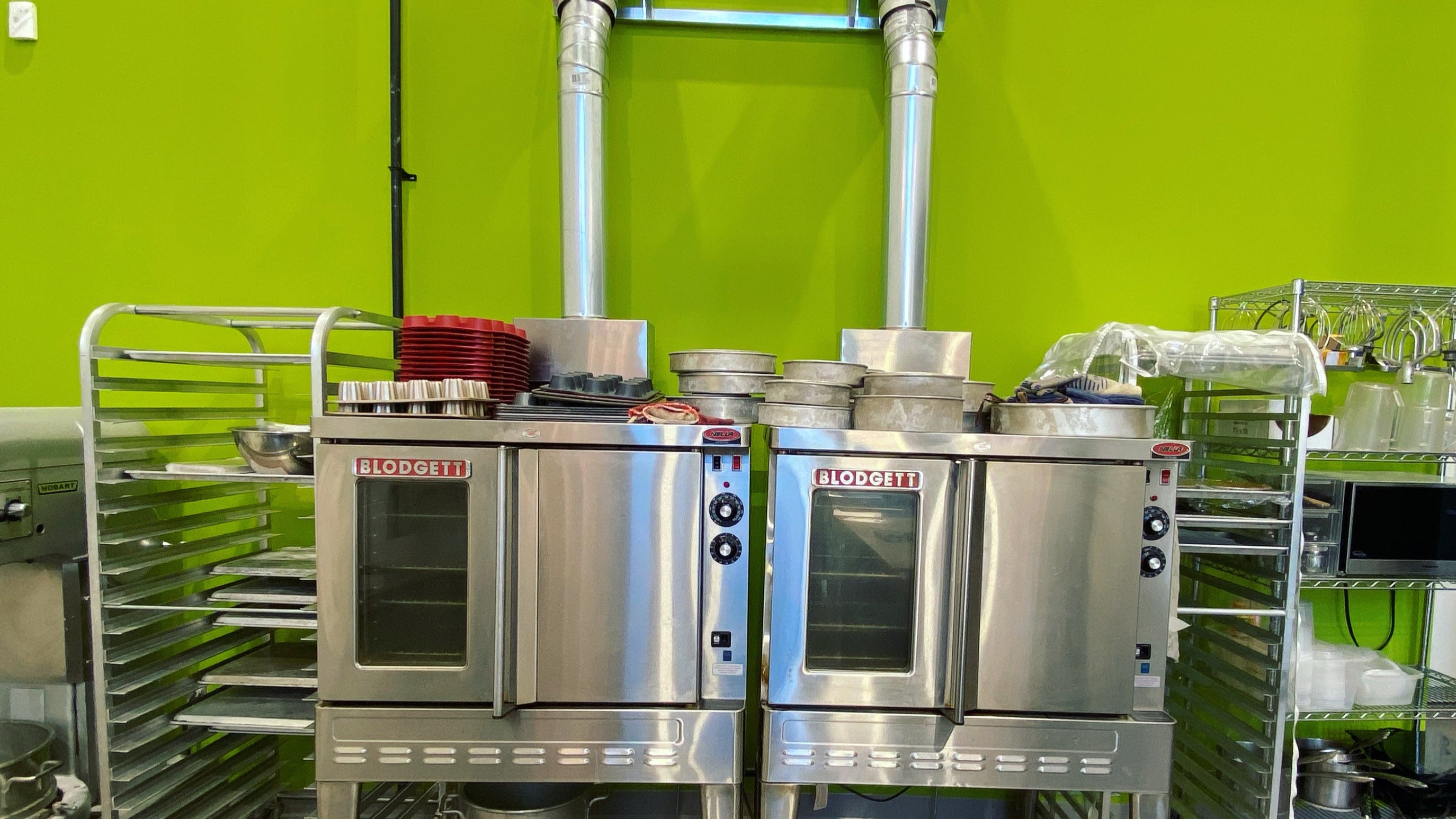 - Commercial ovens (gas & electric), mixers, day use fridge & freezer space, prep space